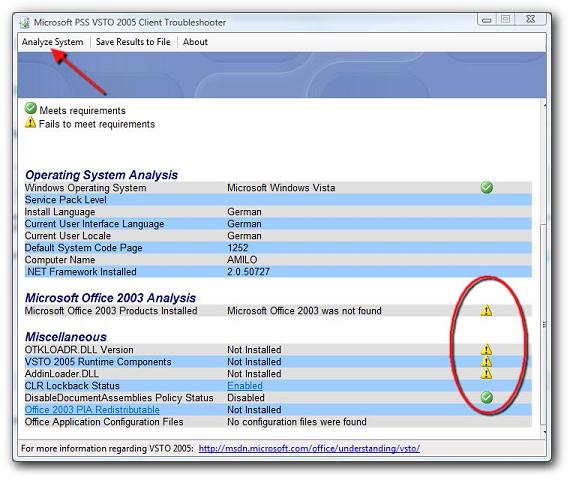 Der PSS VSTO Client TroubleShooter ist ein kostenloses praktisches Analyse-Werkzeug um Ursachen zu finden, warum ein VSTO Office Add-In nicht laufen will.
