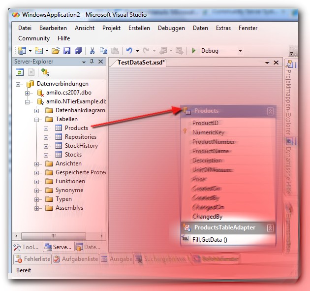 Dies ist ein Screenshot des Visual Studio DataSet-Designers.
